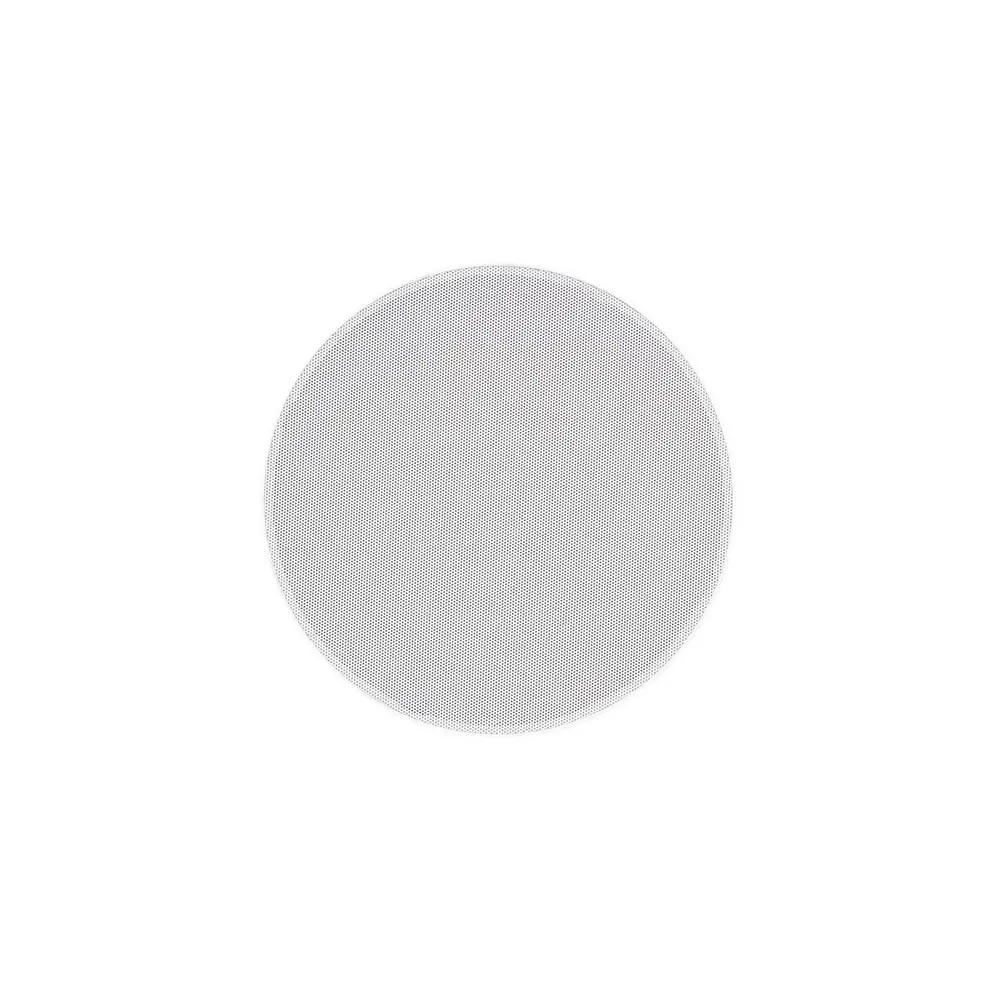La rejilla de 1 mm de grosor reduce la sombra visual en el techo. Al ser magnética y pintable, agiliza la terminación estética en obra, permitiendo igualar el acabado del altavoz con la pintura del entorno arquitectónico.