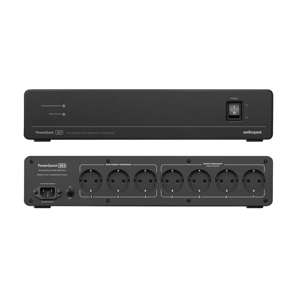 El Audioquest PowerQuest 303 es un acondicionador de corriente y protector de sobretensiones de alto rendimiento, diseñado para proteger y mejorar tu sistema estéreo de alta fidelidad o instalación de cine en casa. Su función principal es limpiar la alimentación eléctrica de ruidos e interferencias, al mismo tiempo que blinda tus valiosos equipos contra picos de tensión destructivos. Pensado tanto para el audiófilo exigente como para el usuario doméstico que busca máxima seguridad, este equipo en formato de componente estándar se integra a la perfección en cualquier mueble o rack, garantizando que tus dispositivos ofrezcan siempre su máximo potencial sonoro y visual.