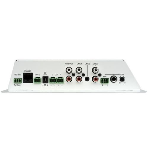 Amplificador estéreo de tamaño extremadamente compacto y posibilidades muy amplias de control remoto: puerto RS‐232, emisor‐receptor IR y puerto analógico 0‐10 VDC.