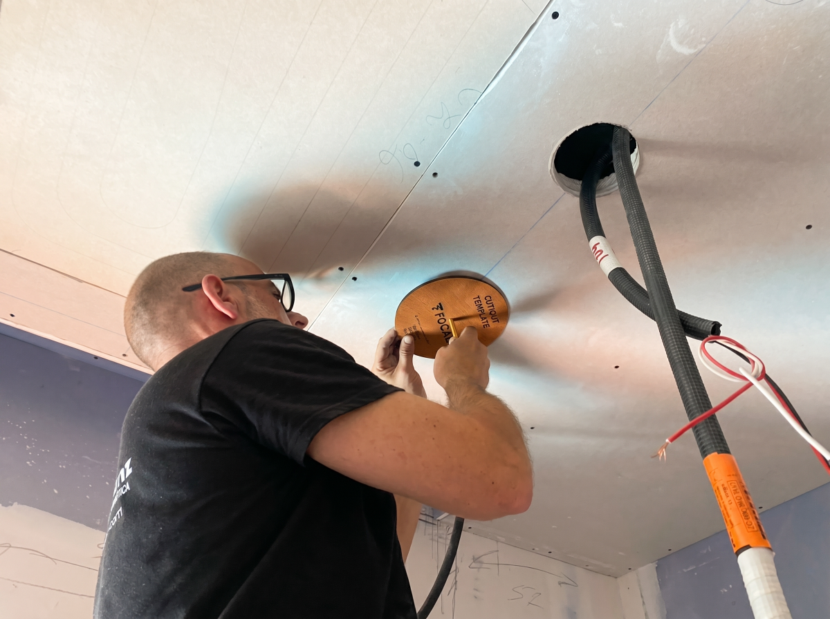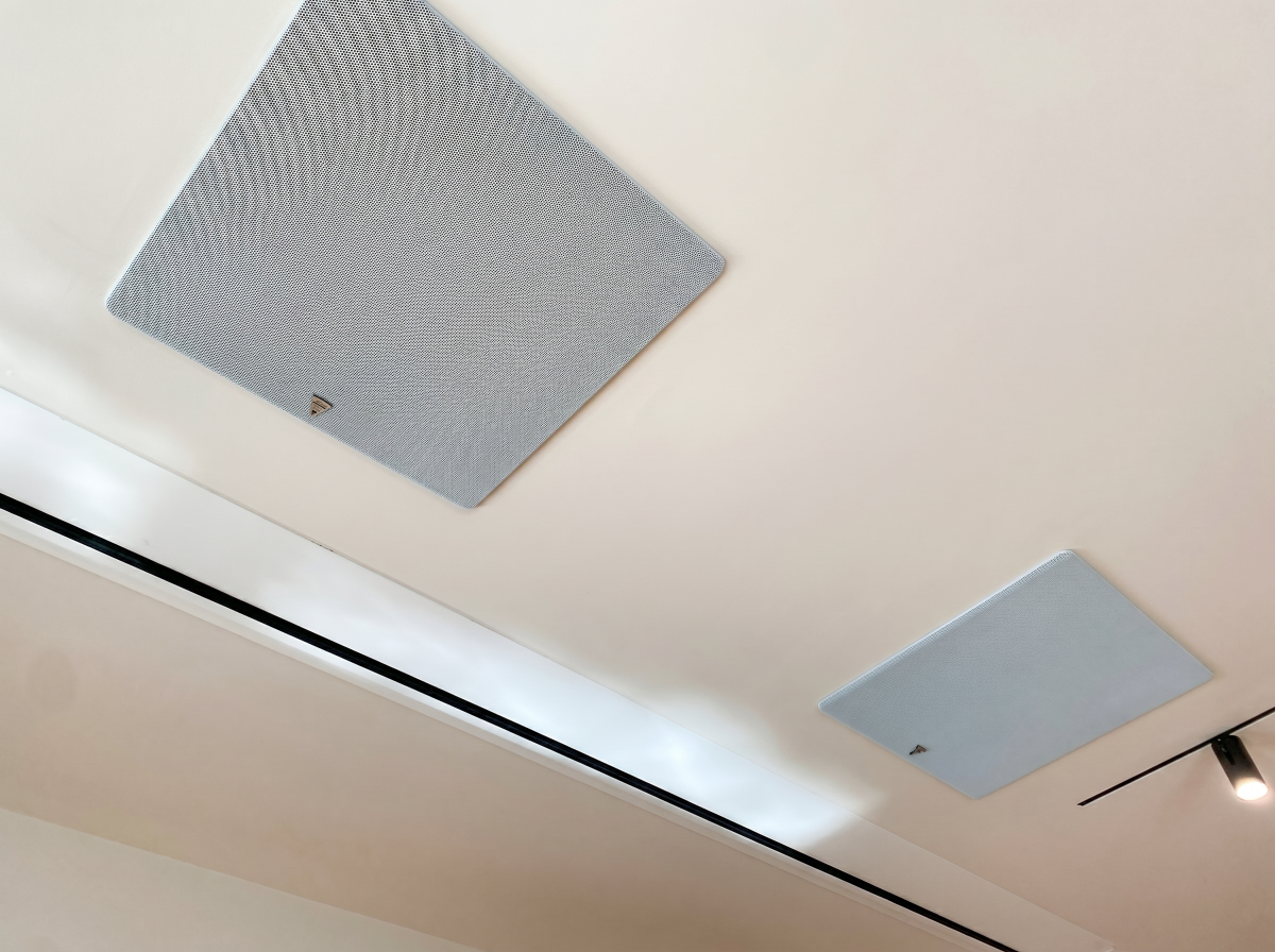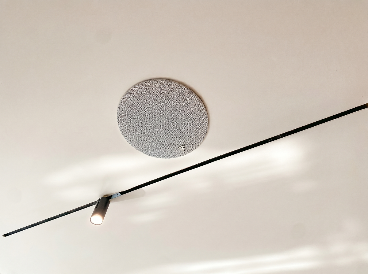 - Altavoces invisibles: Utilizamos altavoces empotrados de la marca Focal, combinando las series 1000 y 100 para garantizar una respuesta sonora excepcional sin romper la estética de los techos diseñada por la decoradora.