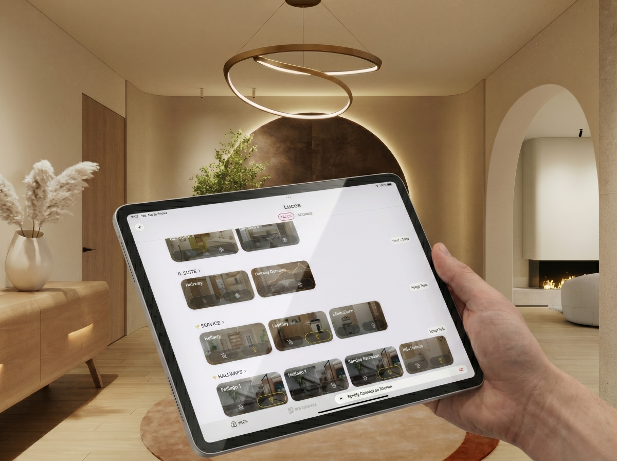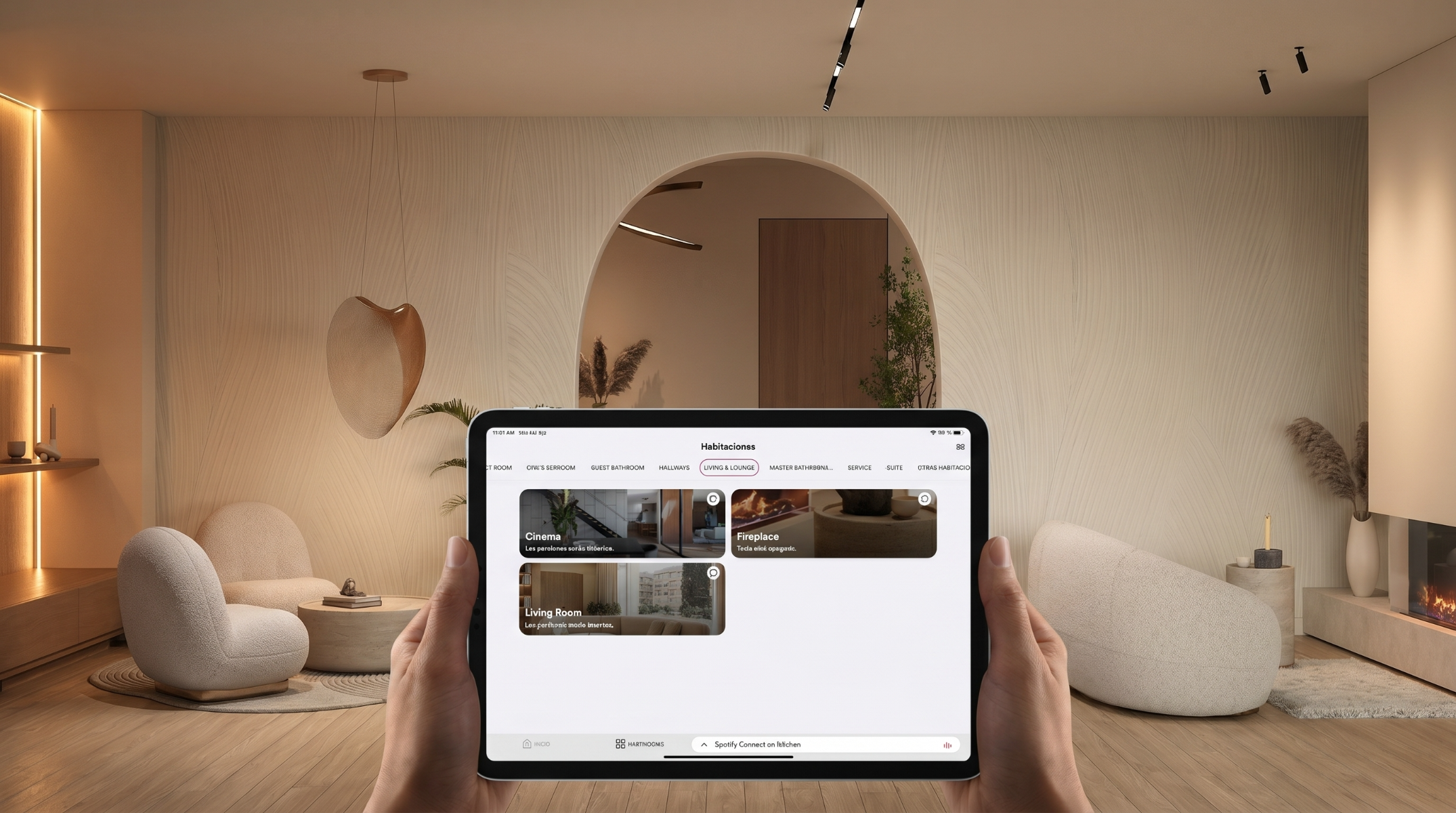 También tiene el control total de la iluminación mediante la app Crestron Home, desde dentro o desde fuera de la casa.